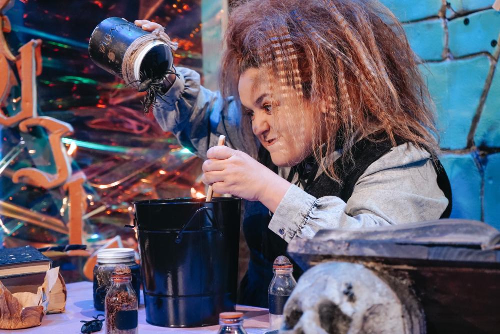 La Bruja Kalambres un personaje que lleva 65 años estudiando Teoría Mágica. Estudia en Brujistong y es aprendiz de bruja. ¡Está a punto de empezar sus prácticas! Hacer hechizos mágicos, usar su escoba mágica, sus primeros pasos con la varita mágica… No es una bruja típica… le gusta dormir por las noches, no quiere madrugar, es rebelde y no le gusta volar en su escoba mágica. Tiene debilidad por curar a los animales del bosque y su asignatura favorita trata sobre experimentos y pócimas mágicas. En este espectáculo, Innovarte presenta una propuesta de teatro musical en el que también se entreveran técnicas como la de “clown”, canciones en directo, marionetas y experimentos científicos.
