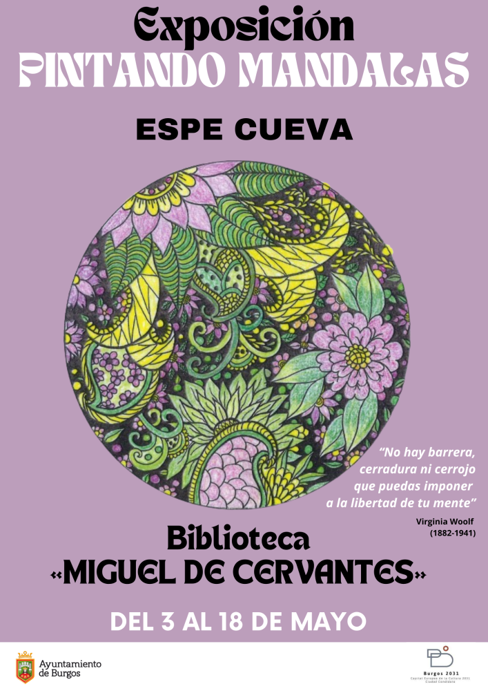 La biblioteca «Miguel de Cervantes» acoge del 3 al 18 de mayo la exposición "Pintando Mandalas" de Espe Cuevas.