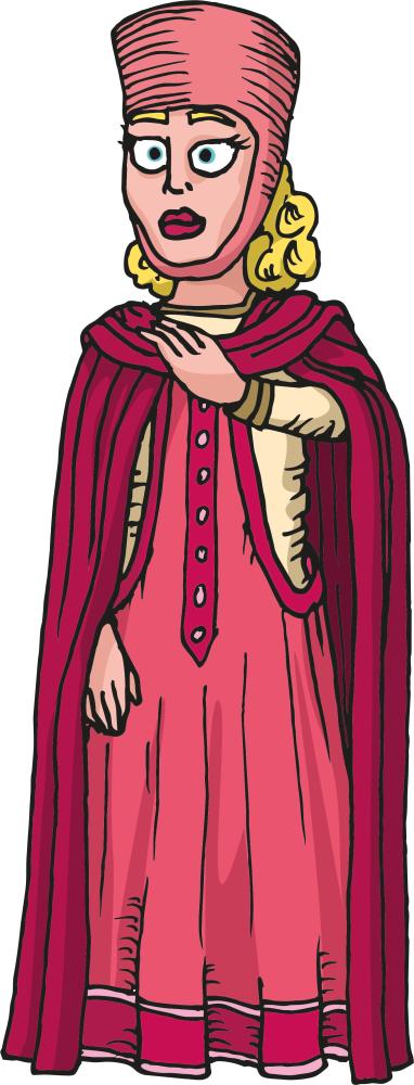 La exposición cuenta con una serie de siluetas de madera en 2D de un tamaño aproximado de 1,30 m. de alto, que representan a todo color los personajes más emblemáticos de la Edad Media, y específicamente en la ciudad de Burgos: el rey Fernando III, la reina Beatriz, el obispo Mauricio, los juglares, el monje copista, el caballero, el peregrino, las damas...