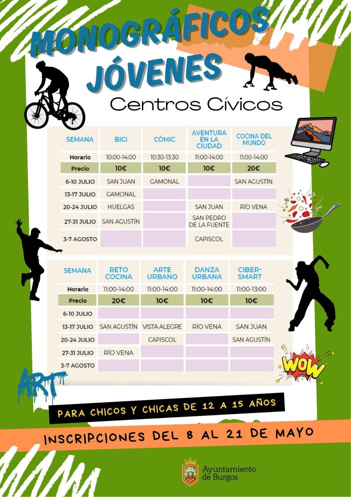 Plazo de Inscripción: 8 al 21 de mayo. Presencial Centros Cívicos y CEAS y a través de la Sede Electrónica www.aytoburgos.es