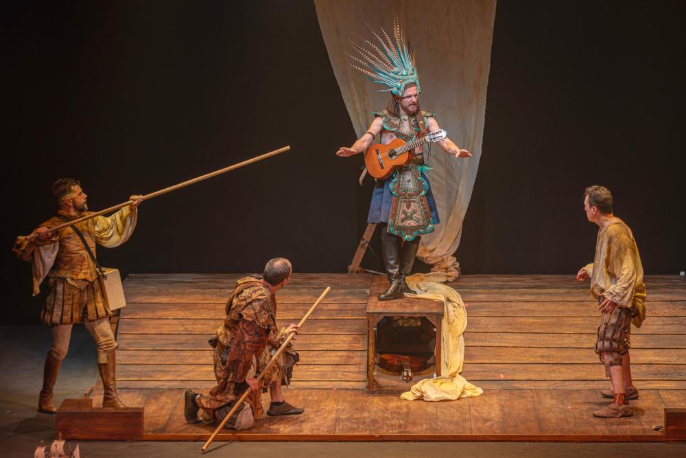 Sábado 28. 20:30 h. CELEBRACIONES DEL DÍA MUNDIAL DEL TEATRO. TEATRO MUSICAL. Ron Lalá: “La Desconquista”. Duración aproximada: 1 h. 20 min. (R).  “La Desconquista” es una “road movie” cómica y musical, una fiesta burlesca basada en las crónicas del Nuevo Mundo. Ron Lalá presenta la parodia definitiva del Descubrimiento al más puro estilo de la compañía: teatro en verso clásico al estilo del Siglo de Oro, con música en directo, ritmo desenfrenado y, sobre todo, muchas carcajadas. Una sucesión de escenas, entremeses y canciones que giran en torno a las ambiciones, obsesiones, miedos y angustias del Imperio donde no se ponía el sol, en su afán invasor y en su pasmo ante la nueva realidad descubierta en un continente aún desconocido. Una visión mordaz, delirante y ácida con textos y música originales, humor vertiginoso, poesía escénica y un quinteto de comediantes inimitables. Más información: https://ronlala.com/portfolio/ladesconquista/