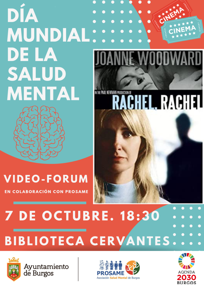 Con motivo del "Día Mundial de la Salud Mental", la Biblioteca «Miguel de Cervantes», en colaboración con PROSAME, organiza un videofórum presentado y moderado por el crítico Eduardo Nabal Aragón, sobre la película "Raquel, Raquel", dirigida en 1968 por Paul Newman.