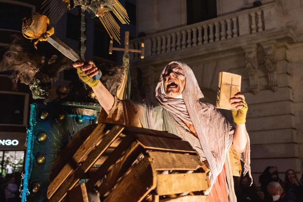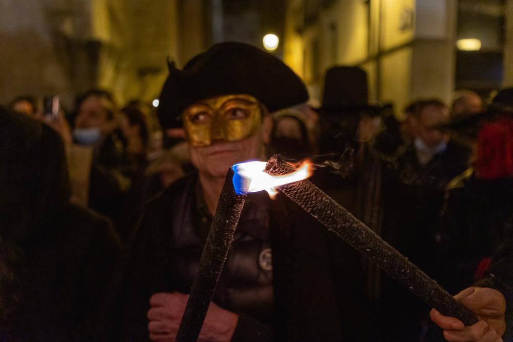 Sepelio, funeral y quema de la famosa sardina, con acompañamiento del séquito de velas y antorchas.