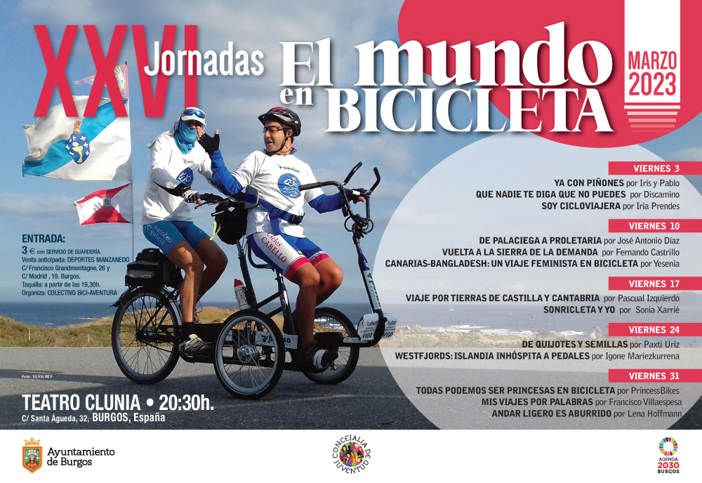 Estrella Paredes, concejala de Juventud del Ayuntamiento de Burgos informa en rueda de prensa telemática y presencial desde la Sala de Prensa del Ayuntamiento de Burgos del programa de las XVI Jornadas El mundo en Bicicleta, acompañada por Luis Markina.