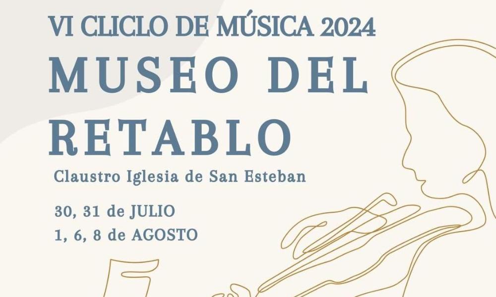 Organizado por el Ayuntamiento de Burgos, llega a la capital burgalesa el VI Ciclo de Conciertos de Verano, Música en el Museo del Retablo, entre el martes 30 de julio y el jueves 8 de agosto, con la colaboración de la Archidiócesis de Burgos.