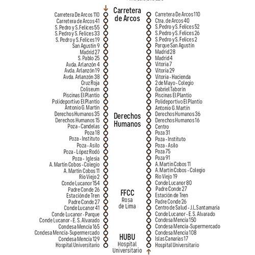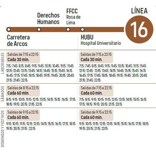 Línea 16: Carretera de Arcos - Derechos Humanos - FFCC (Rosa Manzano) - HUBU.